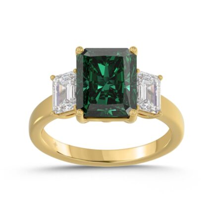 14K YELLOW GOLD 5 1/3CT EMERALD /GREEN EMERALD CUT DIAMOND LADIES RING (CENTER STONE GREEN EMERALD DIAMOND 4 1/3CT)
