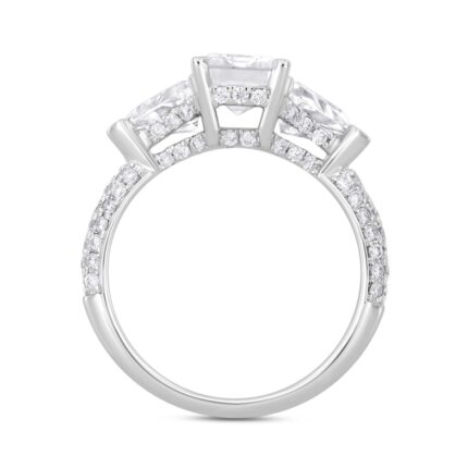 LADIES RING 4 1/2CT ROUND/PRINCESS/TRAPEZOID DIAMOND 14K WHITE GOLD (CENTER STONE PRINCESS DIAMOND 3CT )