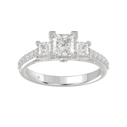 LADIES RING 1 3/4CT PRINCESS/ROUND DIAMOND 14K WHITE GOLD (CENTER STONE PRINCESS DIAMOND 1CT )