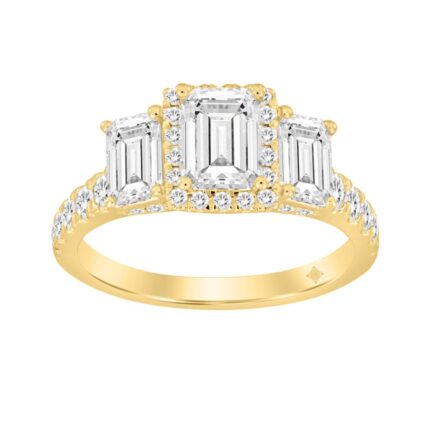 LADIES RING 2 1/2CT ROUND/EMERALD DIAMOND 14K YELLOW GOLD (CENTER STONE EMERALD DIAMOND 1CT )