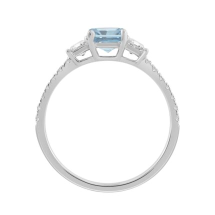 18K White Gold 1 1/3Ct Round & Princess Cut Diamond Fashion Ring 3.00Ct Radiant Blue Center Stone (Color F-G -Clarity Vs1/