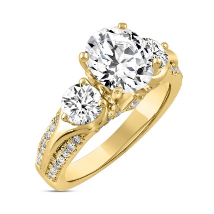 LADIES RING 4CT ROUND/OVAL DIAMOND 14K YELLOW GOLD (CENTER STONE OVAL DIAMOND 3CT )