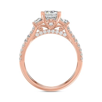 14K ROSE GOLD 3.00CT ROUND/EMERALD/CADILLAC DIAMOND LADIES RING (CENTER STONE EMERALD DIAMOND 2CT)