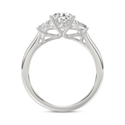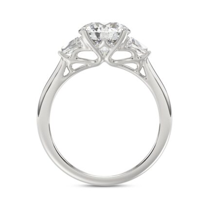 LADIES RING 3CT ROUND/TRAPEZOID DIAMOND 14K WHITE GOLD (CENTER STONE ROUND DIAMOND 2CT )