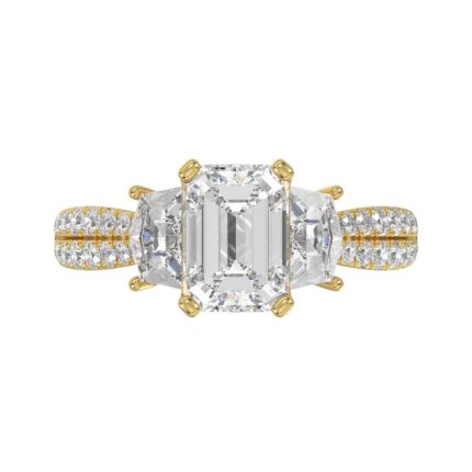 LADIES RING 3CT ROUND/TRAPEZOID DIAMOND 14K YELLOW GOLD (CENTER STONE ROUND DIAMOND 2CT )