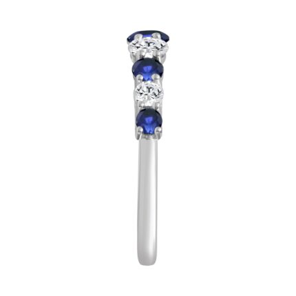 14K White Gold 1.00 CT Emerald Blue Sapphire & White Diamond Alternating Band Ring