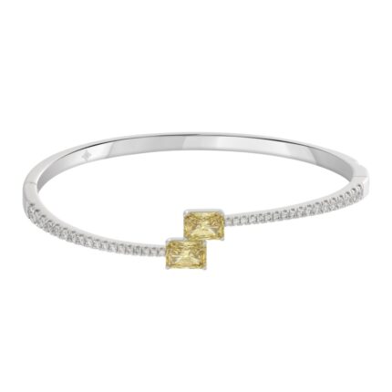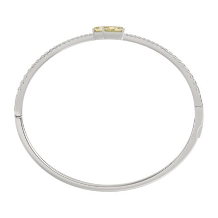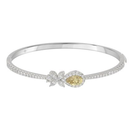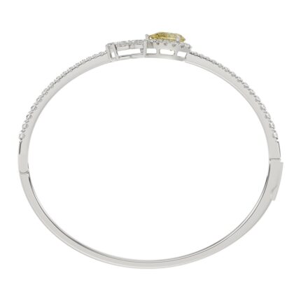 14K WHITE GOLD 3 1/2CT ROUND/OVAL/PEAR DIAMOND LADIES BANGLE (YELLOW PEAR/YELLOW OVAL DIAMOND)