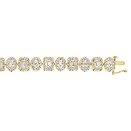 LADIES BRACELET 12 1/2CT ROUND/OVAL/EMERALD DIAMOND 14K YELLOW GOLD (CENTER STONE EMERALD/OVAL DIAMOND 1/4CT )