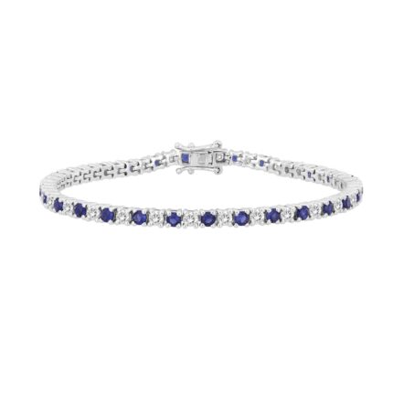 14K WHITE GOLD 5 3/8CT ROUND/BLUE SAPPHIRE ROUND DIAMOND LADIES BRACELET (BLUE SAPPHIRE ROUND 3CT)