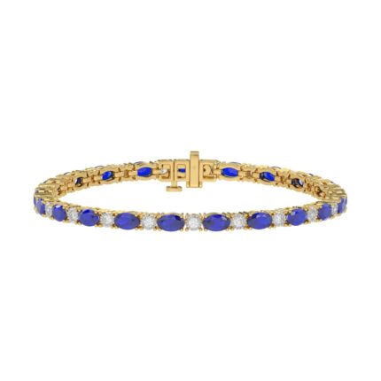 14K YELLOW GOLD 6 7/8CT ROUND/OVAL DIAMOND LADIES BRACELET (BLUE SAPPHIRE OVAL 6 1/6CT)
