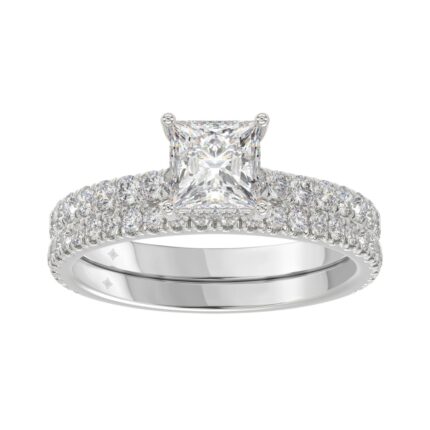 14K WHITE GOLD 1 3/4CT ROUND/PRINCESS DIAMOND LADIES BRIDAL SET (CENTER STONE PRINCESS DIAMOND 1CT)
