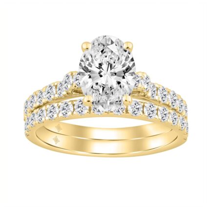 14K YELLOW GOLD 2 1/2CT ROUND/OVAL DIAMOND LADIES BRIDAL SET (CENTER STONE OVAL DIAMOND 1 1/2CT)