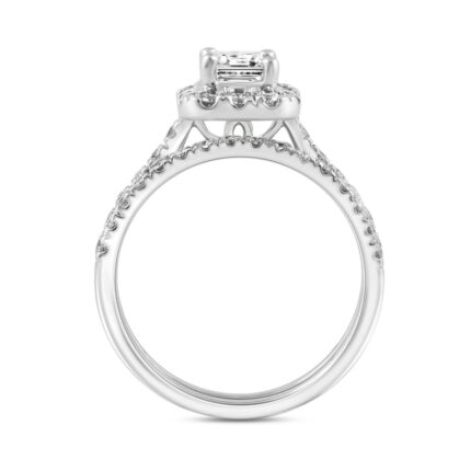 LADIES BRIDAL SET 1 3/4CT ROUND/EMERALD DIAMOND 14K WHITE GOLD (CENTER STONE EMERALD DIAMOND 1.00CT)