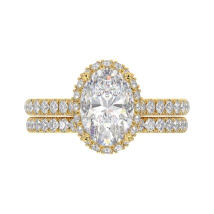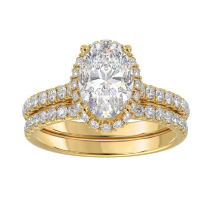 14K Yellow Gold 2 3/8Ct Oval & Round Diamond Bridal Set 1.00Ct Center Stone Oval Diamond Three Stone Engagement Ring With Matching Wedding Band For Wo