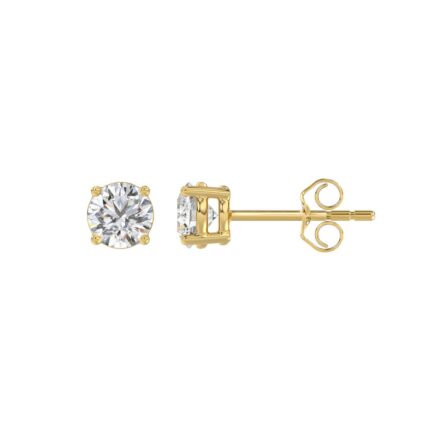 LADIES SOLITAIRE EARRINGS 1/2CT ROUND DIAMOND 14K YELLOW GOLD