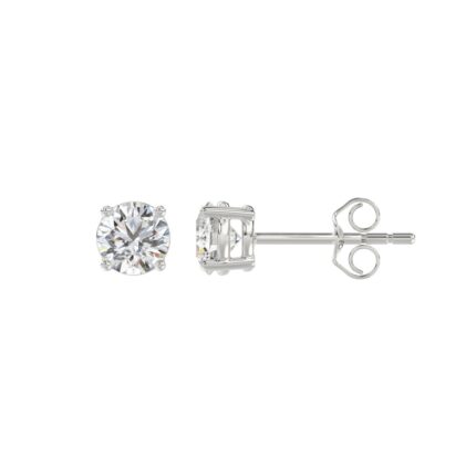 LADIES SOLITAIRE EARRINGS 1/2CT ROUND DIAMOND 14K WHITE GOLD