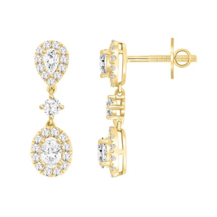 LADIES EARRINGS 2 3/4CT ROUND/OVAL/PEAR DIAMOND 14K YELLOW GOLD (CENTER STONE OVAL DIAMOND 1CT )