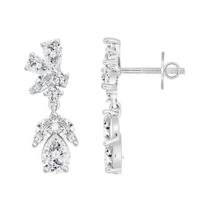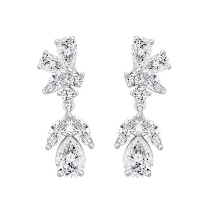 LADIES EARRINGS 4CT ROUND/MARQUISE/PEAR DIAMOND 14K WHITE GOLD