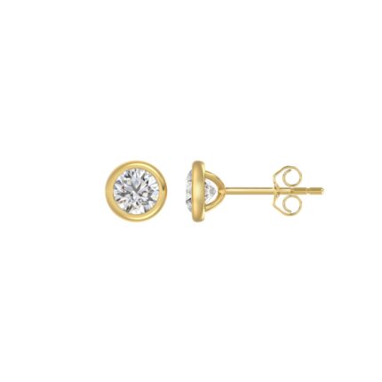 LADIES SOLITAIRE EARRINGS 0.33CT ROUND DIAMOND 14K YELLOW GOLD