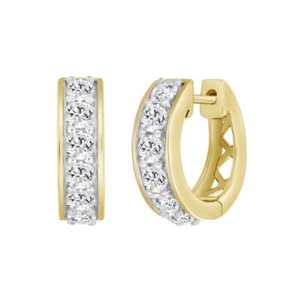 10K YELLOW GOLD 1.00CT ROUND DIAMOND LADIES HOOP EARRINGS