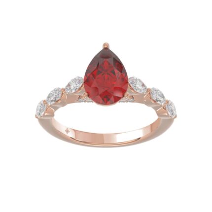 14K ROSE GOLD 3.00CT ROUND/RUBY PEAR/MARQUISE DIAMOND LADUES RING (CENTER STONE PEAR RUBY DIAMOND 2 1/4CT)