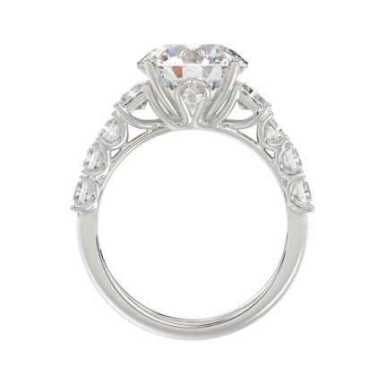 LADIES BRIDAL RING 4.75CT ROUND/EMERALD DIAMOND 14K WHITE GOLD (CENTER STONE ROUND DIAMOND 3.00CT)
