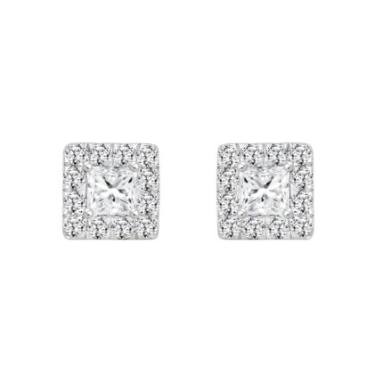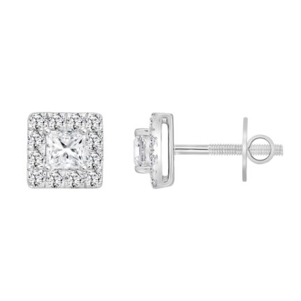 14K WHITE GOLD 1.00CT ROUND/PRINCESS DIAMOND LADIES EARRINGS