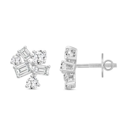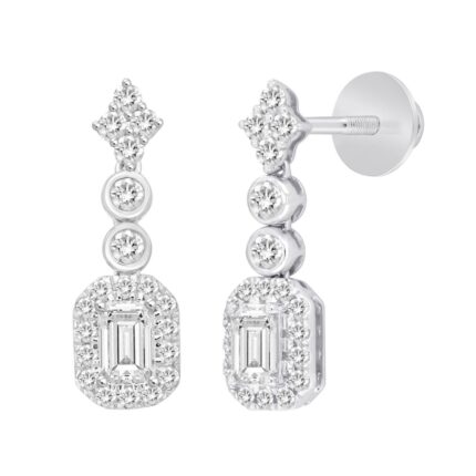 LADIES EARRINGS 1 1/4CT ROUND/EMERALD DIAMOND 14K WHITE GOLD