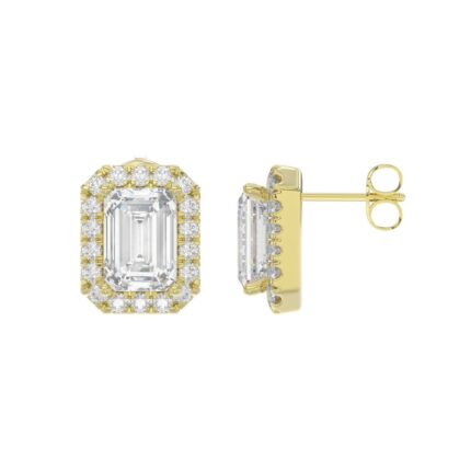 14K YELLOW GOLD 2 1/3CT ROUND/EMERALD DIAMOND LADIES EARRINGS (CENTER STONE EMERALD DIAMOND 1CT)