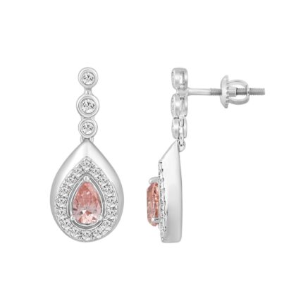 ETERNAL BLUSH COLLECTION LADIES EARRINGS 1 1/2CT ROUND/PEAR DIAMOND 14K WHITE GOLD (CENTER STONE PINK PEAR DIAMOND 1CT)