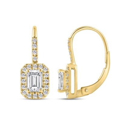 LADIES EARRINGS 1 1/4CT ROUND/EMERALD DIAMOND 14K YELLOW GOLD
