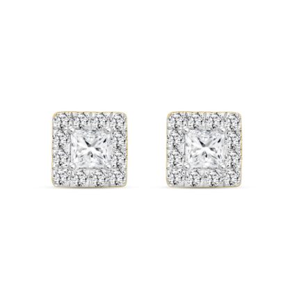 14K YELLOW GOLD 1.00CT ROUND/PRINCESS DIAMOND LADIES EARRINGS