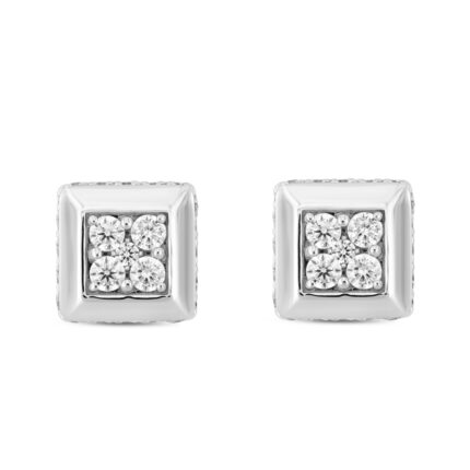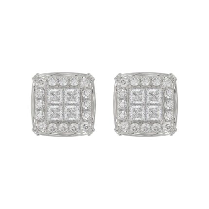 LADIES EARRINGS 1.00CT ROUND/PRINCESS DIAMOND 14K WHITE GOLD