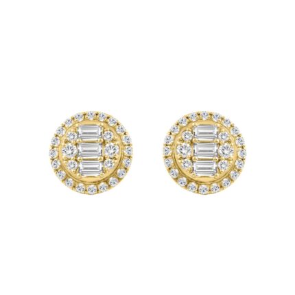 LADIES EARRINGS 1CT ROUND DIAMOND 14K YELLOW GOLD