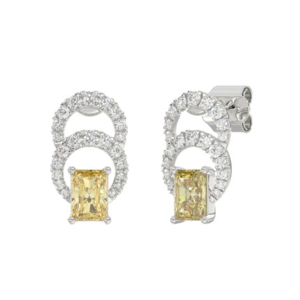 14K WHITE GOLD 2 3/4CT ROUND/YELLOW RADIANT DIAMOND LADIES EARRINGS