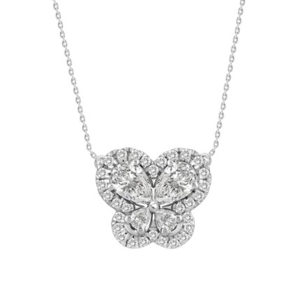 LADIES PENDANT WITH CHAIN 1 1/4CT ROUND/MARQUISE DIAMOND 14K WHITE GOLD