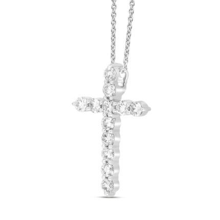 LADIES CROSS PENDANT WITH CHAIN 1CT ROUND DIAMOND 14K WHITE GOLD
