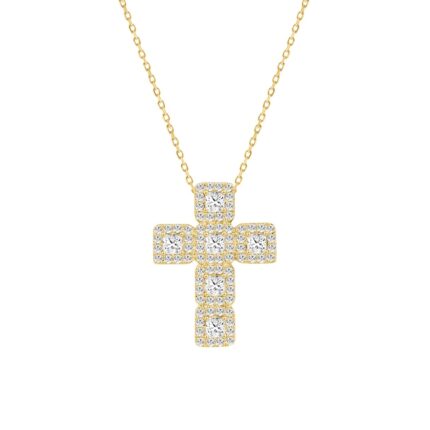 LADIES CROSS PENDANT WITH CHAIN 3CT ROUND/PRINCESS DIAMOND 14K YELLOW GOLD