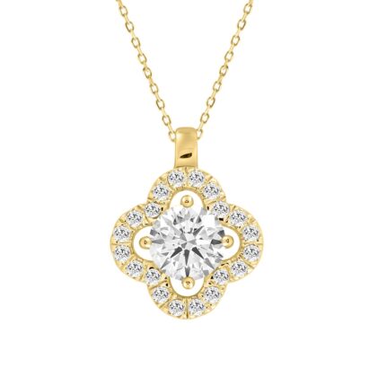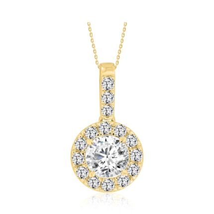 LADIES PENDANT WITH CHAIN 1 1/2CT ROUND DIAMOND 14K YELLOW GOLD (CENTER STONE ROUND DIAMOND 1CT)