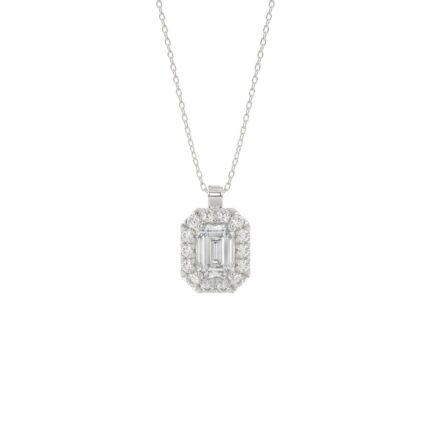 LADIES PENDANT 1 3/4CT ROUND/EMERALD DIAMOND 14K WHITE GOLD (CENTER STONE EMERALD DIAMOND 1 1/2CT)