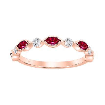 14K ROSE GOLD 3/4CT ROUND/MARQUISE RUBY DIAMOND LADIES RING (CENTER STONE MARQUISE DIAMOND 1/2CT)