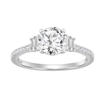 14K WHITE GOLD 1 1/3CT ROUND/BAGUETTE DIAMOND LADIES RING (CENTER STONE ROUND DIAMOND 1CT)