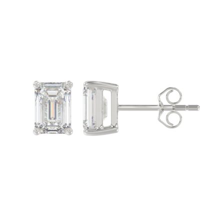 LADIES SOLITAIRE EARRINGS 2 1/2CT EMERALD DIAMOND 14K WHITE GOLD