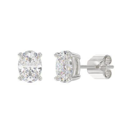 LADIES SOLITAIRE EARRINGS 2 1/2CT OVAL DIAMOND 14K WHITE GOLD