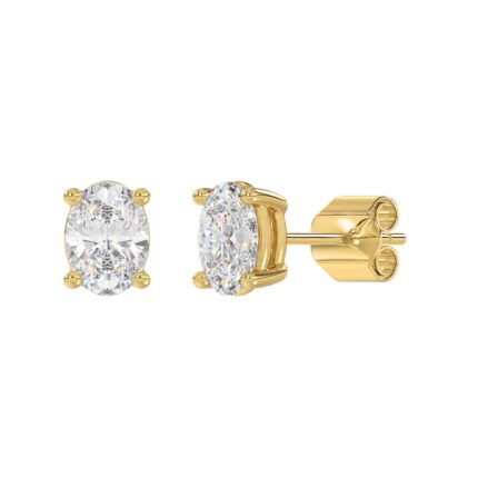 LADIES SOLITAIRE EARRINGS 2 1/2CT OVAL DIAMOND 14K YELLOW GOLD