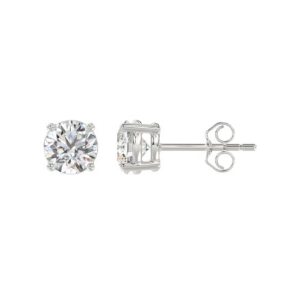LADIES SOLITAIRE EARRINGS 1 1/3CT ROUND DIAMOND 14K WHITE GOLD