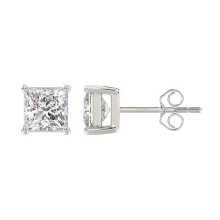 LADIES SOLITAIRE EARRINGS 3CT PRINCESS DIAMOND 14K WHITE GOLD