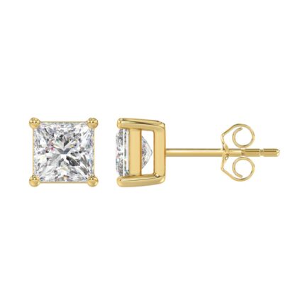 LADIES SOLITAIRE EARRINGS 3CT PRINCESS DIAMOND 14K YELLOW GOLD