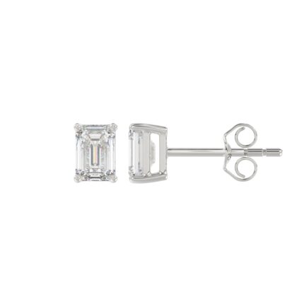 LADIES SOLITAIRE EARRINGS 1CT EMERALD DIAMOND 14K WHITE GOLD