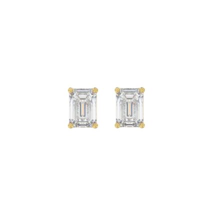 LADIES SOLITAIRE EARRINGS 1CT EMERALD DIAMOND 14K YELLOW GOLD